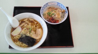 迷ったあげく、650円の復興ランチを注文。ラーメンに、豚丼のセット。カロリーオーバーか???