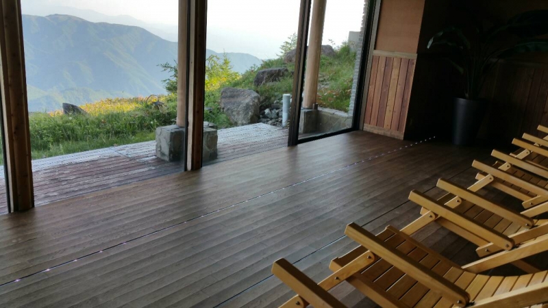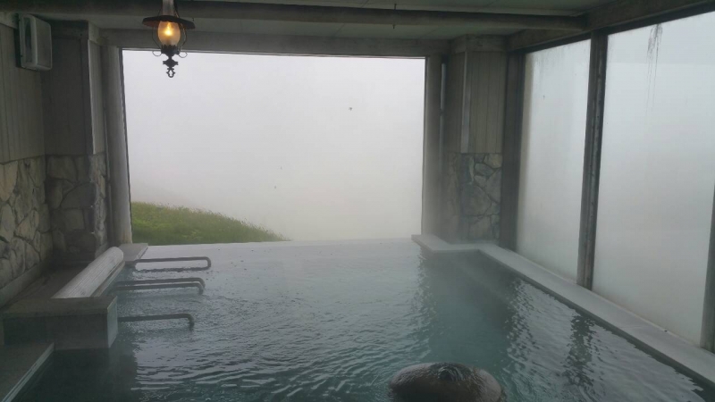 風呂も晴れていると美しい草原が見えるのですが、雲が上がってくると真っ白です。