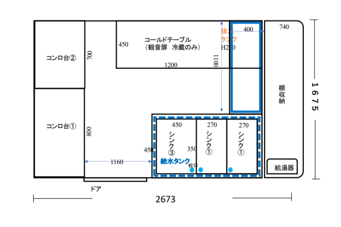 ・2槽シンク+手洗いシンク
